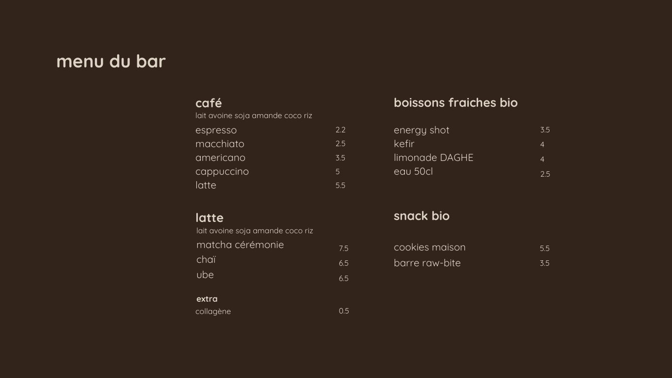 Un lieu chaleureux pour se poser avec une boisson chaude ou fraîche et des snacks sains (de 9h à 18h30).